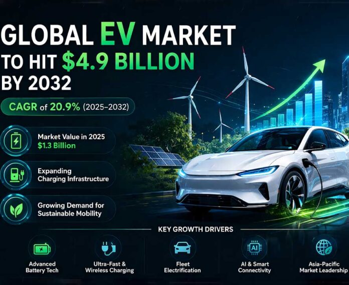 According to a report by Maximize Market Research, the global electric vehicle (EV) market, which was valued at $1.3 billion in 2025, is expected to grow at a CAGR of 20.9% to reach about $4.9 billion by 2032. The global electric vehicle market report highlights the key trends driving the industry, market size, and future projections to 2025.