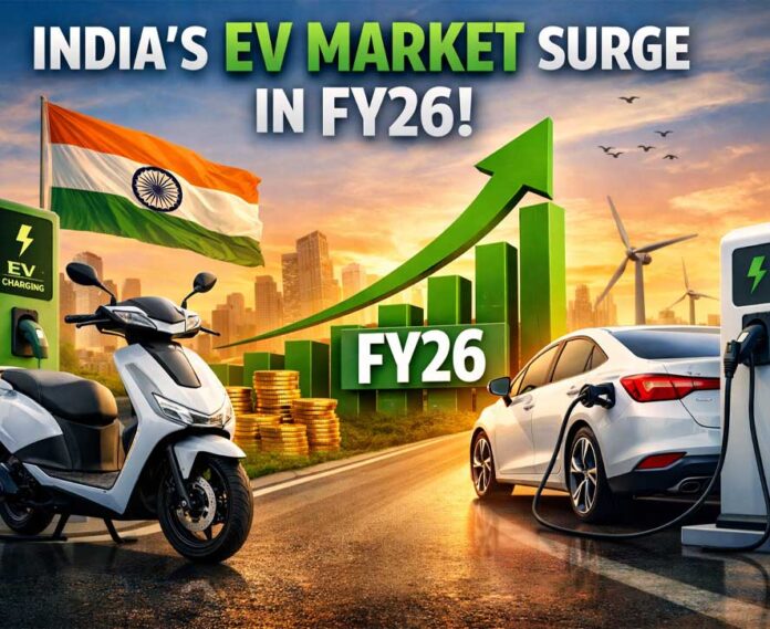 According to VAHAN portal data, India’s electric vehicle (EV) market witnessed strong growth in FY 2025-26, which got a significant push towards the end of the year along with strong demand in both electric two-wheelers (e2W) and electric four-wheelers (e4W).